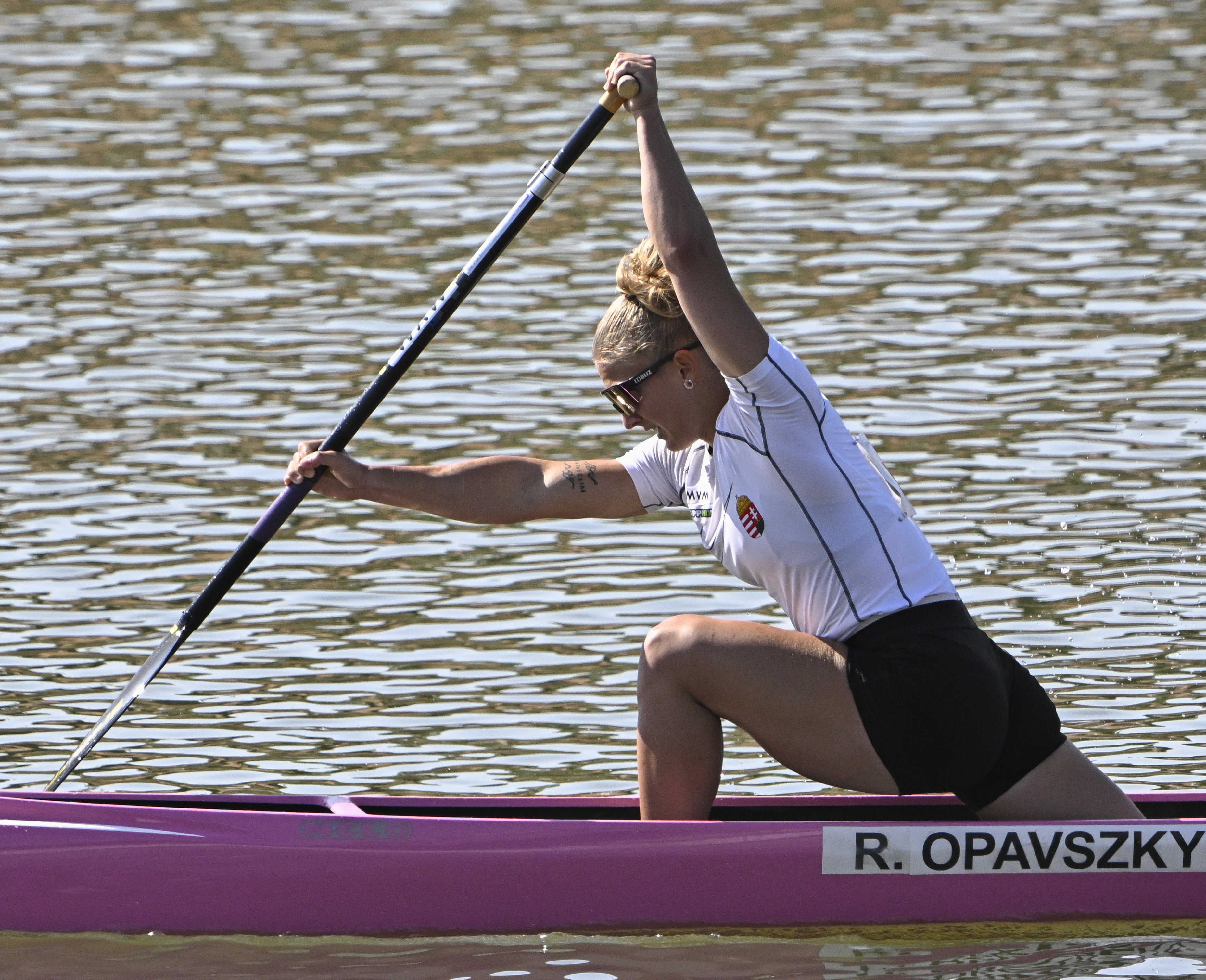 A későbbi második helyezett Opavszky Réka a kajak-kenu Európa-bajnokság női kenu egyes 500 méteres számának döntőjében a csehországi Racicében 2025. június 22-én. MTI/Szigetváry Zsolt
