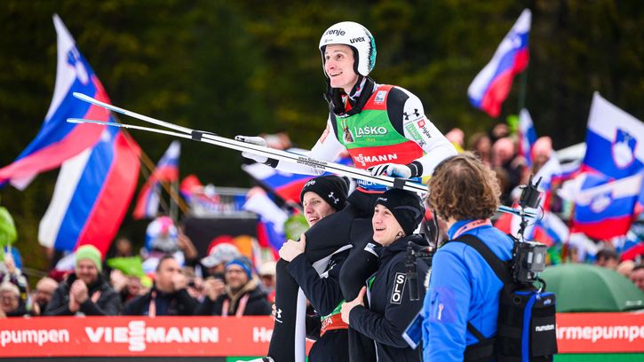 Szlovén tarolás Planicán, óriási ünneplésbe torkollott Ziga Jelar első győzelme
