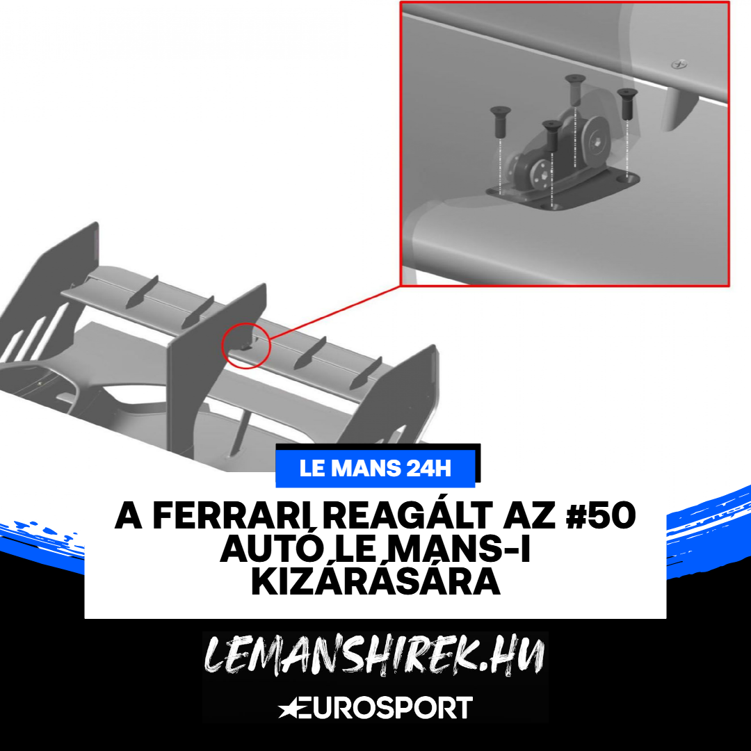 Az olasz márka egy közleményben részletezte, pontosan mi történt a Le Mans 24h utolsó órájában az #50 autó hátsó szárnyával, ami végül az egység kizárásához vezetett. A közlemény része volt a lenti kép, amely megmutatja, honnan hiányzott a szóban forgó négy csavar.
